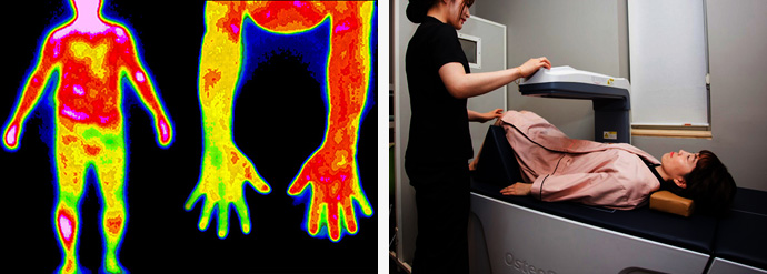 편안의 첨단 체열검사는 CT나 MRI 등에서도 알 수 없는 신경병증, 근육통증, 순환장애, 염증성 질환 등을 진단할 수 있습니다. 또한 첨단 골밀도 분석기로 척추와 대퇴골 골다골증에 대한 정밀 분석이 가능합니다.